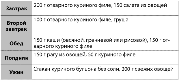 Желающие избавиться от лишнего всего за три дня могут попробовать очень жесткую, но действенную монодиету на курином мясе. Во время ее соблюдения за день нужно съедать до 700 г отварного филе, разделенного на несколько приемов пищи. Также разрешается пить травяной чай и обычную воду. Спиртные напитки, газировка и фруктовые соки из рациона полностью исключаются. Дольше трех дней соблюдать эту монодиету не рекомендуется, поскольку она не является сбалансированной.