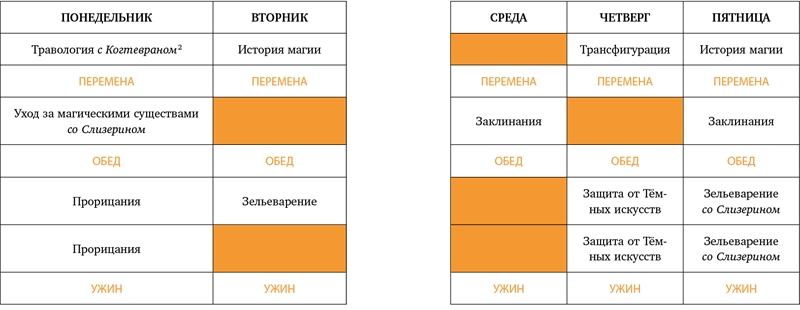 Расписание занятий Гарри Поттера на 4-м курсе[8] (1994/95 гг.)