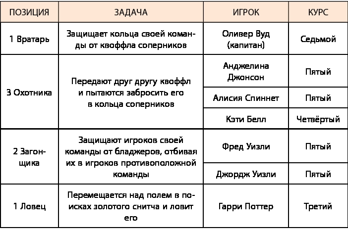 Ребята, не попавшие в сборную в начале учебного года, всё равно имеют неплохой шанс поучаствовать в соревнованиях. Квиддич – очень опасный спорт (травмированные игроки могут надолго застрять в больничном крыле), и капитанам нужно быть готовыми к тому, чтобы быстро подыскать замену.