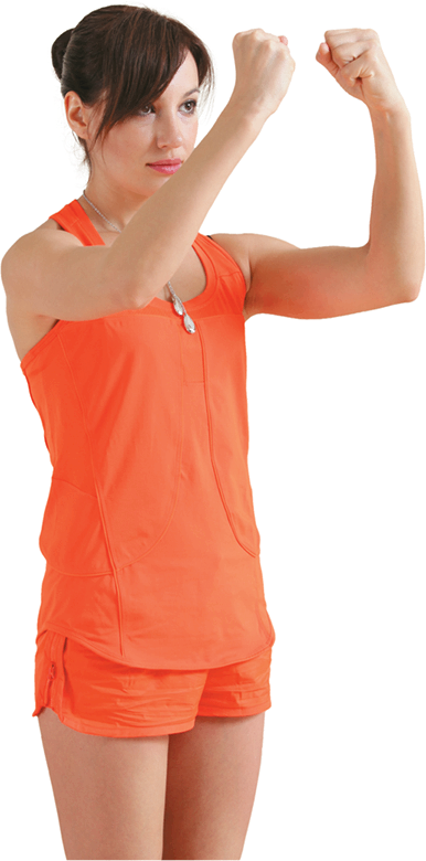 Вытягиваем руки перед собой. Сживаем кулаки. Вращаем руки от кисти до локтя сначала к себе (9 раз), потом от себя (9 раз). Локоть, плечо неподвижны.