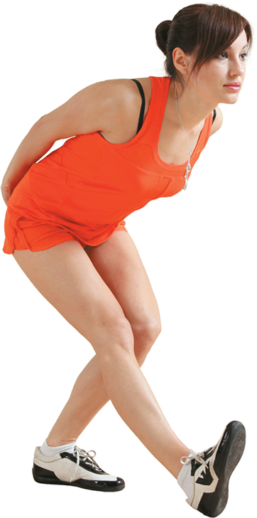 Правая (растягиваемая) нога – на «пятке». Руки – в «замке» за спиной. Корпус – прямой – в наклоне. Взгляд – перед собой.