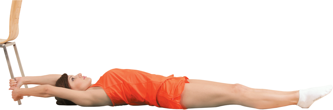 Исходное положение: ложимся на спину, вытянувшись «в струну», руками держимся за опору. Например, за ножку стола или дивана.