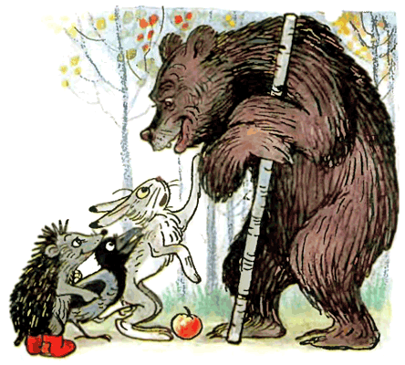 Четвертый кусочек Ёжик Медведю в лапу положил: