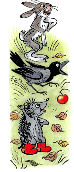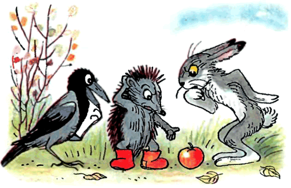 — Но тут только одно яблоко! — сказали Ёж, Заяц и Ворона.