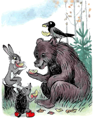 — Вот что, — рассудил Медведь, — все вы правы, и потому каждый из вас должен яблоко получить…