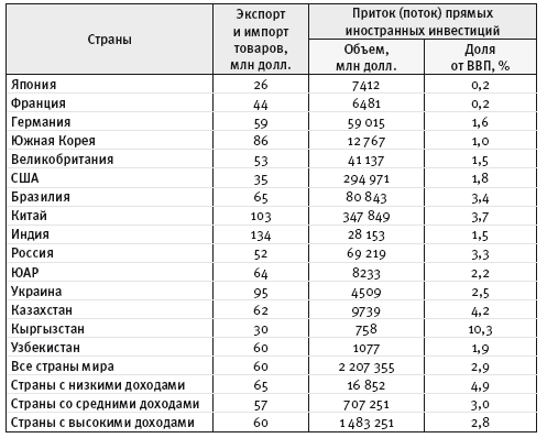 Совершенно очевидно, что Япония самым тесным образом связана с мировой экономикой и зависит от ее состояния. Однако показатели роли внешнеэкономических связей дают не всегда понятную картину. В частности, как следует из таблицы 3.7, отношение внешнеторгового оборота к ВВП Японии примерно вдвое ниже среднемирового для стран с высокими доходами. Это объясняется тем, что размеры национальной экономики, внутреннего производства и потребления в Японии чрезвычайно велики.
