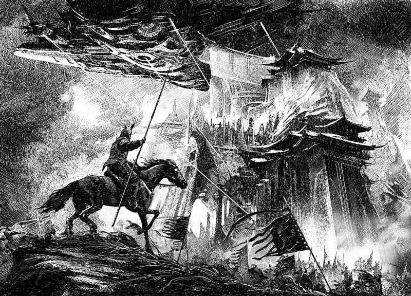 Четкими, угрожающими рядами разворачивались над замком вражеские силы. Точно туча, запятнавшая голубую небесную дымку, стягивались к стенам иссиня-черные птицы. На спинах пернатых хищников пригнулись всадники, закованные в самурайские доспехи. Атакующие шли крыло к крылу, невидимая петля затягивалась.