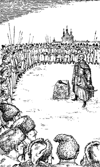 – Братія моя, отамани-молодці, славне Військо Запорозьке, – сказав дзвінким на морозі голосом. – Дякую за честь, котрою були удостоїли. Важке випало літо, й не всі, хто вручав мені сю булаву, стоять сьогодні отут, на майдані. Декотрі дивляться на неї з Капулівських горбів, декому ворон