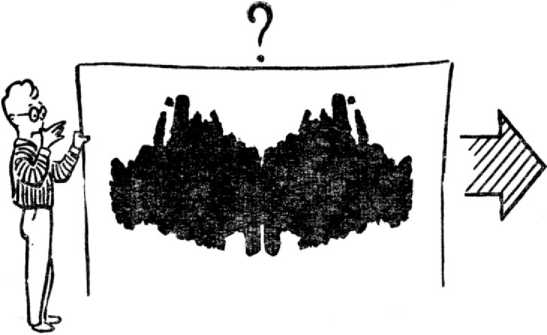 Тот опыт, который мы с вами сейчас произвели, впервые предложил своим испытуемым французский психолог Альфред Бинэ. Рисунок, который вы видели,— просто чернильное пятно, клякса, полученная таким образом: на лист бумаги капнули чернил, а потом сложили его вдвое. Удивительно, заметил Бинэ, что при этом всегда получается что-то, похожее на что-то. Во всяком случае, дети никогда не отвечают, что на рисунке чернильное пятно: они говорят: «собака», «облако». Что касается взрослых, то оказалось, что ничего не видят в кляксе, как правило, только нервнобольные, страдающие определенными мозговыми заболеваниями; поэтому немецкий психиатр Роршах успешно использовал опыт с чернильным пятном для диагностики заболеваний.