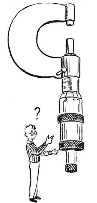 Что это может быть? В тот момент, когда вы задали себе такой вопрос, начался интеллектуальный акт — задача поставлена, производится ориентировка в ее условиях, т. е. в нашем случае — в зрительных ощущениях и элементарных восприятиях [5]. По всей вероятности, это какой-то измерительный инструмент, так как на нем нанесены деления. Но что он может измерять и как? Если бы перед нами был не рисунок, а всамделишный прибор, то вопрос решился бы сразу, как только вы повернули бы по оси «барабан» — втулку в нижней части прибора. Увидев, как выдвинулся (или вдвинулся) мерительный