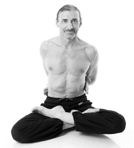 Точно так же согните левую ногу и поместите левую стопу поверх правого бедра, в его основание, так чтобы пятка касалась низа живота. Левое колено максимально приблизьте к полу. Сцепив ноги в замок, выпрямите позвоночник, шею и голову – они должны быть на одной линии.