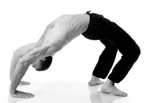 Выпрямите руки и ноги и поднимите тело как можно выше, прогибаясь в спине настолько, насколько это реально для вас на сегодняшний день. Слегка двигая тело назад и вверх, вы сможете почти полностью выпрямить колени.