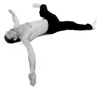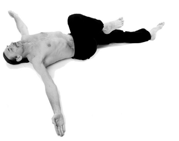Лягте на спину, вытянув ноги и свободно раскинув руки в стороны. Сосредоточьтесь на ощущениях в теле. Позвольте всем группам мышц расслабиться.