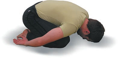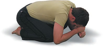 Завершив предыдущее упражнение, на заключительном выдохе опустите ягодицы на пятки, а голову – вниз, лбом к полу. Руки свободно вытяните на полу вдоль ног или перед собой ладонями к полу. (рис. 42, 43)