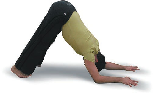 Асана 6. «Собака» с отжиманием от пола (адхомукха шванасана)Описание. Исходное положение – поза «кобра». Оттолкнитесь руками и подайте корпус назад, переходя в позу «собака». (рис. 60)