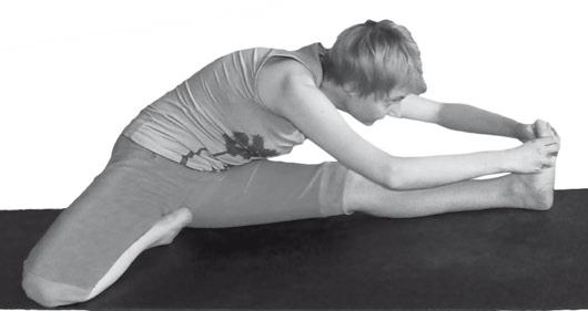 4 Наклоняемся вперед – вниз. Взгляд на большой палец левой ноги.