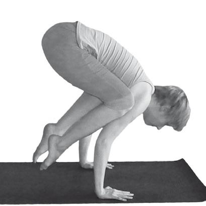 3 Ставим колени на руки ближе к подмышкам и, перенося центр тяжести вперед, выпрямляя руки, принимаем Бакасану.