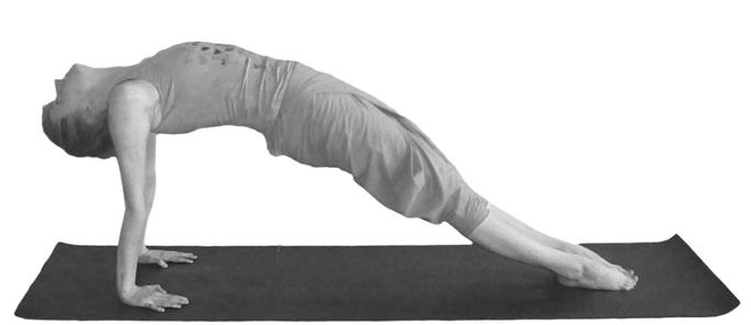 2 Одновременно отталкиваясь руками и ногами, поднимаем таз вверх. Лицо разворачиваем вверх и назад.
