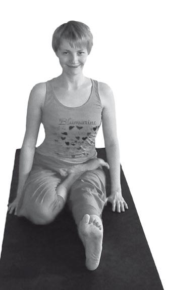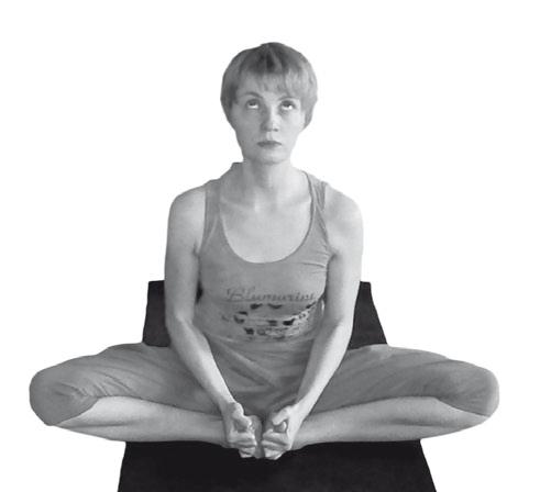 1 Сидя на коврике, соединяем вместе стопы и захватываем большие пальцы ног. Расправляя плечи, поднимаем голову лицом вверх.