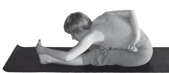 5 Захватываем левой рукой левый носок, а правой через спину – правый носок, поднимаем голову, взгляд на большой палец левой ноги.