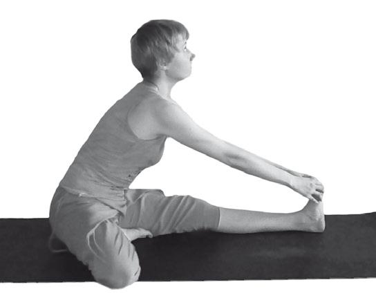 Ширшасана. Поза головы к колену1 Левая нога вытянута вперед, а правую сгибаем в колене и отводим назад. Правая пятка прижата к лобковой кости. Захватываем обеими руками левый носок. Поднимаем голову, делаем вдох.