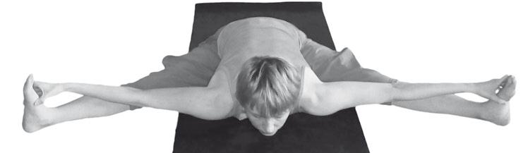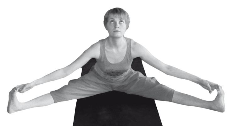 1 Разводим ноги широко в стороны. Захватываем руками за большие пальцы ног или за внешние ребра стоп. На вдохе поднимаем голову, разворачивая лицо вверх.