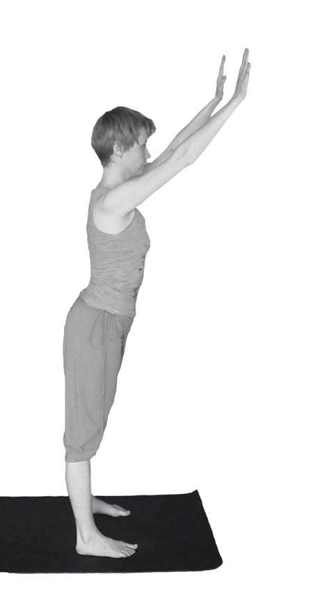 5 Полностью плечи раскрываются с прямыми руками. Однако если не удается даже пальцами коснуться стены высоко над головой, можно опустить руки, согнув их. Можно так же развести руки несколько шире. Это также облегчит выполнение упражнения.