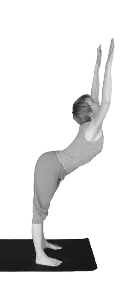 2 Вытянутые вверх руки отодвигаем назад так, чтобы коснуться ладонями или хотя бы пальцами стены.