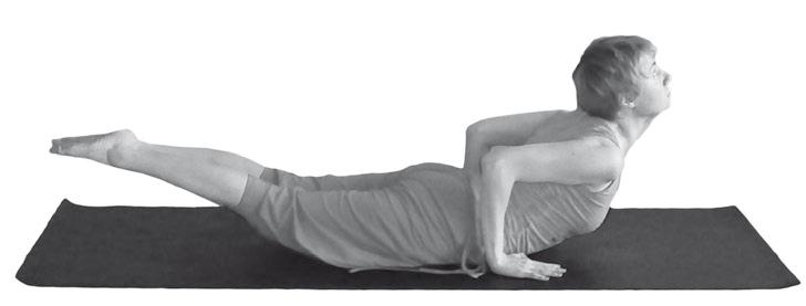 3 Раскрывая плечи и грудь, поднимаемся в прогиб. Ноги и грудь поднимаются одновременно. Взгляд на кончик носа.