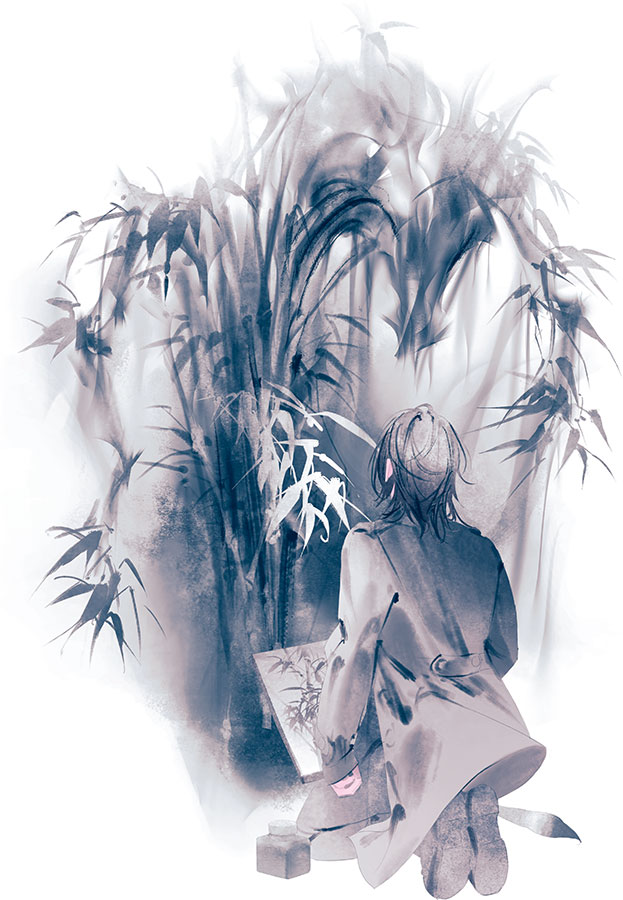 Художник не останавливался. Штрих. Линия. Листья он рисовал быстрыми мазками, делая их темнее, чем стебли. По мере приближения кошмара на его руках появлялись похожие наросты. Когда Художник изобразил под бамбуком кадку, сущность резко скукожилась.