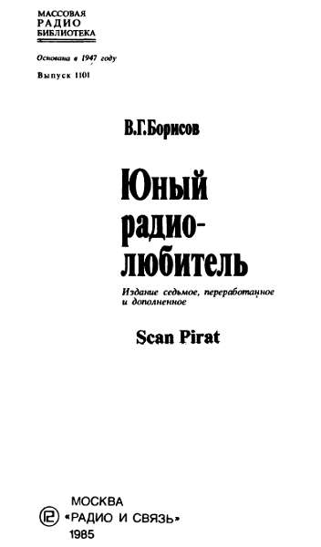И вот очередное, седьмое издание этой книги. В нем, как и в предыдущих изданиях, учтены предложения и пожелания, высказанные многими читателями в письмах и на конференциях юных радиолюбителей, проведенных в различных городах страны, на слетах юных техников. Кроме того, в нем значительно расширены и обновлены описания радиотехнических устройств и приборов, предлагаемых читателям для самостоятельного изготовления. В целом же книга является обобщением опыта радиокружков школ и внешкольных учреждений, с которыми автор — большой энтузиаст радиолюбительского движения — поддерживает давно деловую связь.