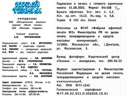 Наиболее интересные публикации журнала «Юный техник» и его приложений «Левша» и «А почему?» вы найдете в дайджесте «Спутник «ЮТ» на сайте http: \\junetech.chat.ruили http: \\jteh.da.ru