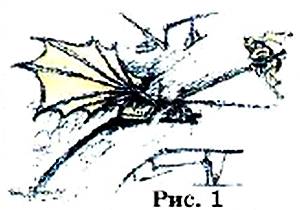 Но самое главное — Леонардо говорил о необходимости предварительного испытания крыльев на специальном устройстве, которое мы бы назвали стендом (рис. 1).