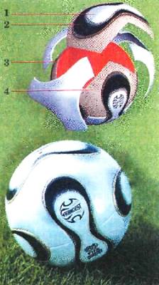 Для очередного чемпионата фирма Adidas приготовила и новый мяч. Впервые новый мяч состоит из 14 панелей сложной формы — 6 «пропеллеров» и 8 «турбин (см. рис.).