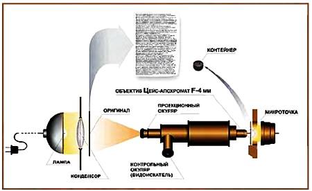 Очень часто «микроточку» делали при помощи микроскопа, пуская через него свет в обратную сторону.