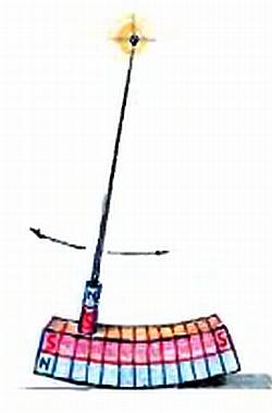 Груз маятника — полоска оргстекла, изогнутая по дуге с тем же радиусом 20 м. Ее вы можете отформовать непосредственно на лотке. Вот как это делается.