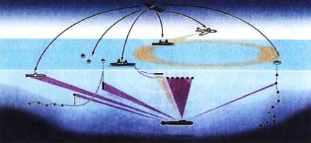 Одна подлодка, имеющая на борту четыре комплекта антенн быстрого развертывания, способна перекрыть площадь более 2500 квадратных миль. А группа из трех кораблей, развернув подобную систему, а также имея на борту буксируемые излучатели для подсветки целей и противолодочные вертолеты, может в течение длительного времени контролировать акваторию общей площадью более 30 000 квадратных миль. И ни одна сколько-нибудь крупная подводная цель не останется в этом квадрате незамеченной.
