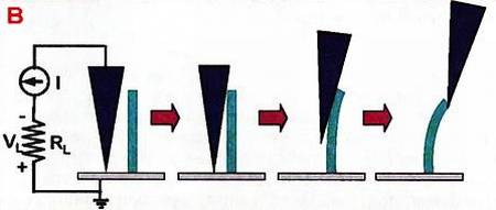 При тщательном изучении оказалось, что нанопроволочки из оксида цинка представляют собой совершенные кристаллы в форме шестигранной призмы. И когда такие проволочки диаметром от 30 до 100 нм и длиной от 1 до 3 мкм изгибаются под действием внешних причин — случайных вибраций, сотрясений воздуха, — они, словно обычные пьезоэлементы, вырабатывают микроток.