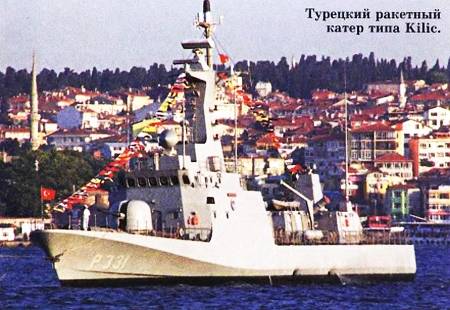 На южном фланге России тон задает Турция. На верфях этой страны в 1978–1996 годах было построено около десятка ракетных катеров типа Dogan, Yildis и Kilic.
