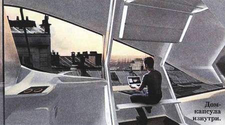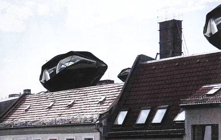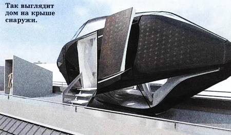 Дом-капсула Living Roof capsule — легкий жилищный блок длиной около 10 м — предназначен для установки на плоских крышах зданий, которые есть в любом городе. Благодаря солнечным батареям, расположенным на поверхности Living Roof, и ветрогенераторам, этот блок в состоянии сам себя обеспечить достаточным количеством энергии. Система сбора дождевой воды и конденсата обеспечивает питьевую и хозяйственную воду, делая модуль практически независимым от любых внешних систем снабжения. Полная независимость модуля от местоположения делает процесс переноса максимально простым, достаточно только вызвать вертолет, и можно отправляться в путь.