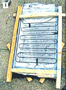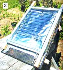 Теперь щит устанавливается на подставку под углом в 30–45 градусов на крыше будочки душа с таким расчетом, чтобы его плоскость была направлена в южную часть небосклона. Именно там в наших широтах находится солнце в середине дня. А чтобы стекло от жары не поехало, в нижней части рамы необходимо вкрутить парочку шурупов, которые будут служить упорами.