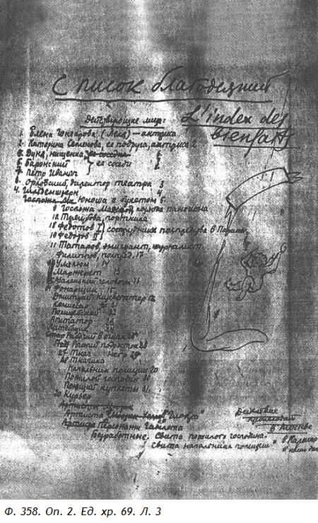 Олеша Ю.Список благодеяний. Сцена «В комнате артистки Лели Гончаровой». Наброски. Автограф // Ф. 358. Оп. 2. Ед. хр. 77. Л. 1.