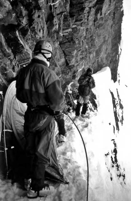 Установка лагеря II на Южной стене Лхоцзе. М. Туркевич, А. Погорелов