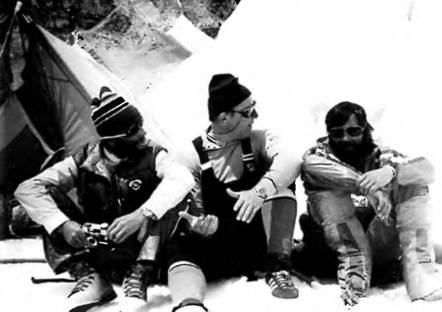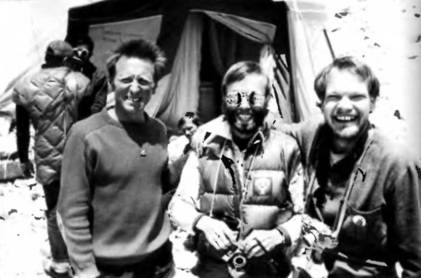 В. Онищенко, С. Бершов, М. Ворбуртон. Базовый лагерь. Эверест, 1982 г.
