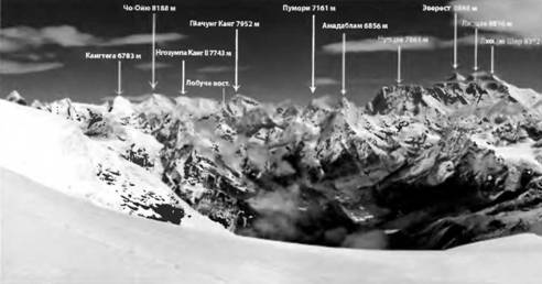 Эверест и Лхоцзе с вершины Чо-Ойю