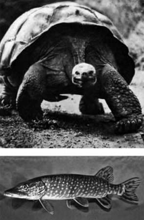 Кто сколько живет? Рекордсменами, кажется, надо считать черепах. Во всех уголках мира замечена долгая жизнь этих не слишком поворотливых ползунов и пловцов. В Ханое мне показали пруд, где живут черепахи, которым «не менее трехсот лет». Эти слова я записал как легенду. Но вот подлинный факт. В 1737 году на знаменитом «черепашьем острове» Эгмонта (Индийский океан) была поймана черепаха, возраст которой ученые определили в сто лет. Черепаху доставили в Англию. «Двести лет с лишним посетители зоопарка в Лондоне видят эту старушку» — так писали газеты перед минувшей войной. Я не успел навести справку, но, возможно, знаменитая черепаха жива и поныне.