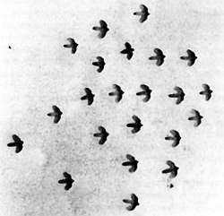 Каждая из чешуек очень похожа на птицу. Немного терпения сложить чешуйки в нужном порядке — и вот на снегу можно снять «торопливую стайку птиц»…