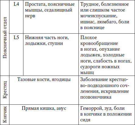 Нервы, выходящие из поясничной и крестцовой областей позвоночника, – нижнюю часть туловища и ноги.