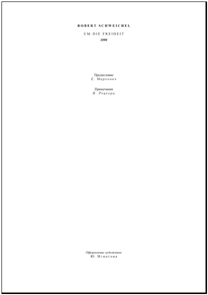 Когда немецкий писатель Роберт Швейхель издал в 1898 году свой последний роман «За свободу», ему было уже около восьмидесяти лет. Это произведение стало его своеобразным завещанием своему народу. Роман о Великой крестьянской войне 1525 года, главным героем которого был восставший народ, напоминал немцам об их героическом прошлом и звал к новым боям за свободу. В революционное будущее родной Германии писатель-демократ Швейхель непоколебимо
