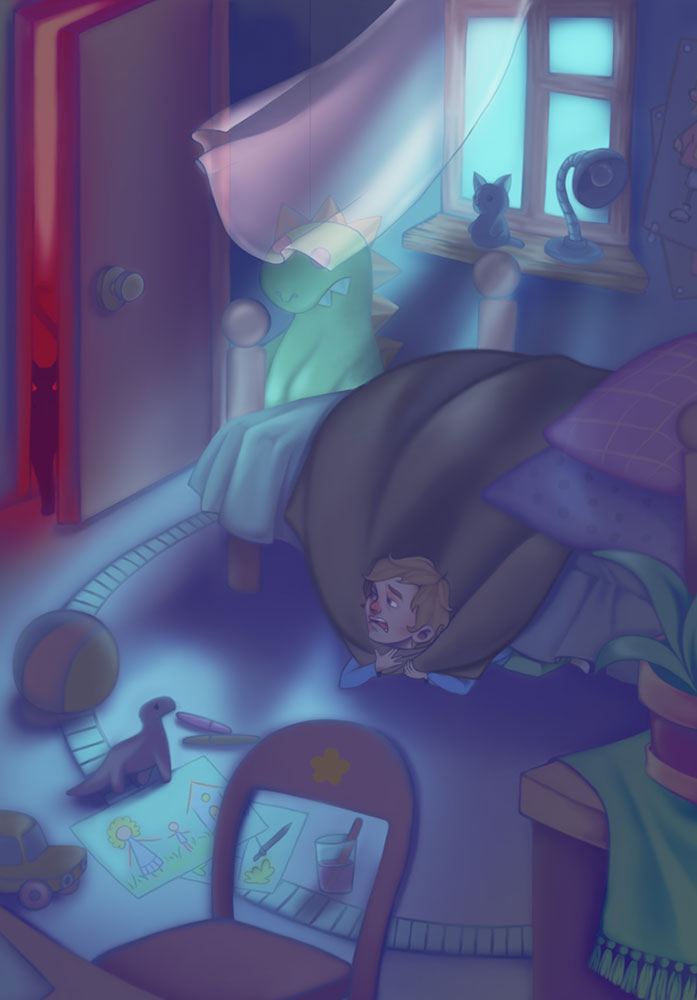 Хрустело по углам и там и тут:«Под нами гоблины живут?!»Внезапно окна засветились:«Наверное, пришельцы приземлились?»Вот-вот сейчас его возьмут,С собою в космос заберут.И пробыл Витя под кроватью до утра,Пока с работы мама не пришла.Наконец, парнишка ей расскажет,Что приключилось с ним покажет.Однако, страхи были все напрасны:В квартире, как и было – безопасно.Тут мама улыбнулась и сказала:«В Вурдалаке ты не узнал кота Ивана,Под полами шелестела мышка,А фары включал сосед Мишка.Стыдно Виктору – он ведь мужчина,Трусом быть непримиримо.Теперь он дома остаётся без труда,Не будут смеяться над ним никогда!